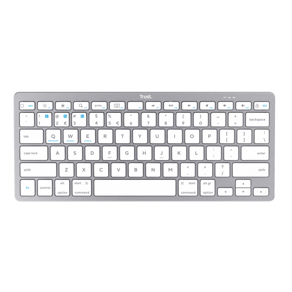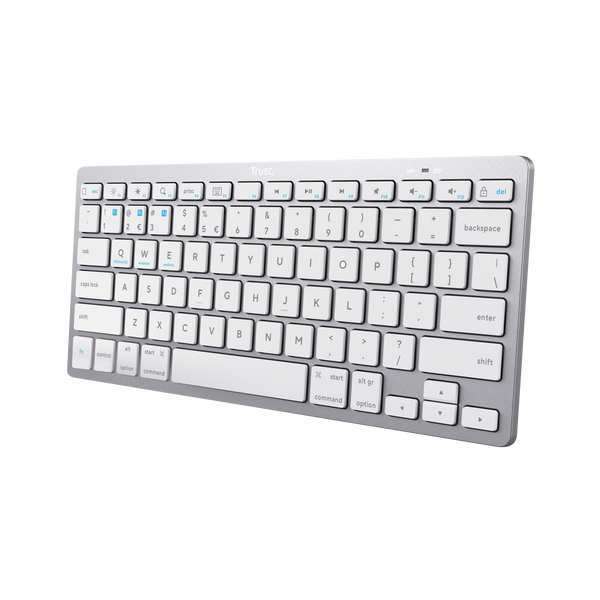 El Teclado Trust Basics Bluetooth Plata es la solución perfecta para quienes buscan un teclado ultraligero, portátil y eficiente para trabajar, estudiar o disfrutar de entretenimiento en casa. Con su conexión Bluetooth 4.0, permite emparejar hasta tres dispositivos distintos, incluyendo PC, Mac y Smart TV, y cambiar entre ellos de manera rápida y sencilla, ofreciendo máxima versatilidad sin enredos de cables.