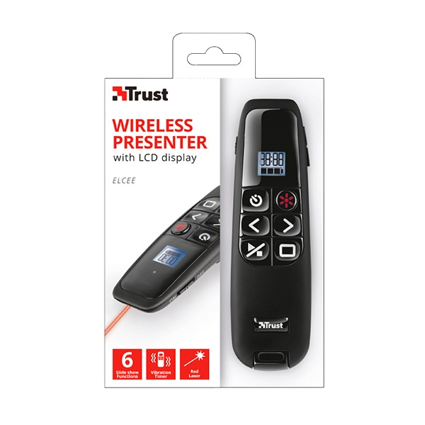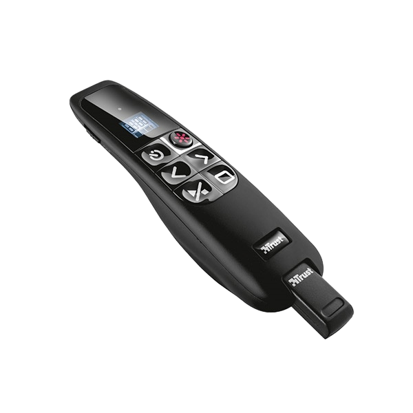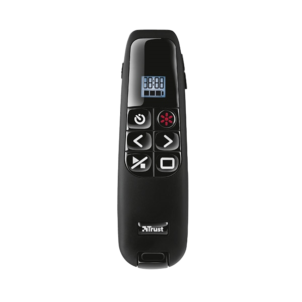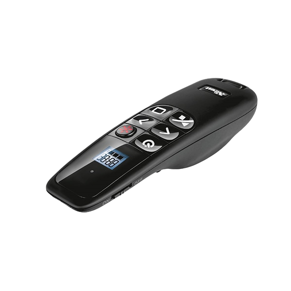 Presentador inalámbrico con pantalla LCD y temporizador para controlar las presentaciones de forma profesional.
