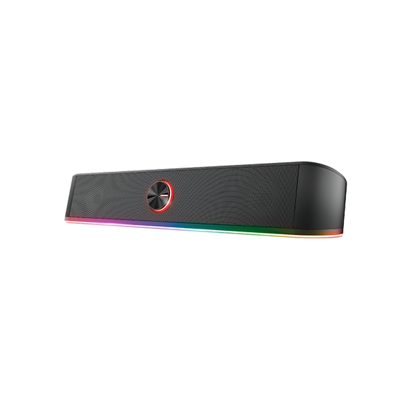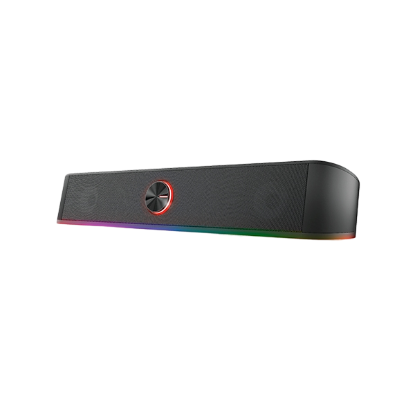 Los altavoces estéreo no tienen por qué ocupar espacio útil del escritorio. La barra de sonido GXT 619 Thorne de Trust para gaming se presenta en un factor de forma reducido. El sonido estéreo nítido con 12 W de potencia máxima y la iluminación RGB hacen de esta barra de sonido la solución perfecta para todos los gamers que desean ahorrar espacio sin sacrificar una buena experiencia de gaming.
