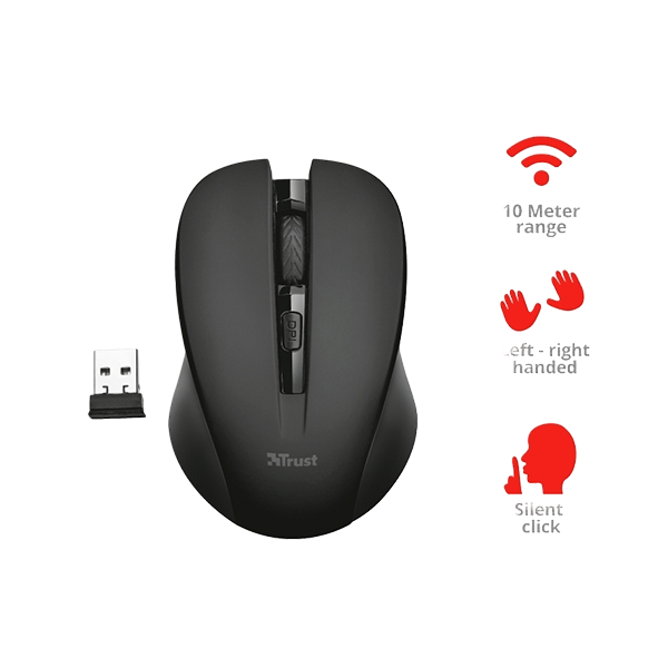 Trust Mydo Silent Click Óptico 1800DPI Negro – Ratón Inalámbrico