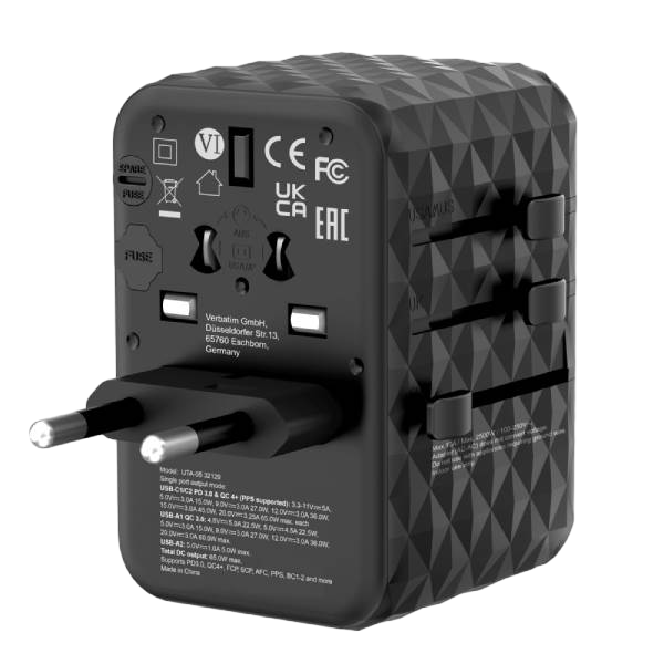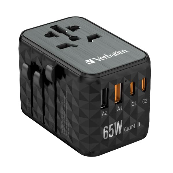 Verbatim UTA-05 | GaN III 65W | 2x USB-C | 2x USB-A – Cargador de Pared Universal