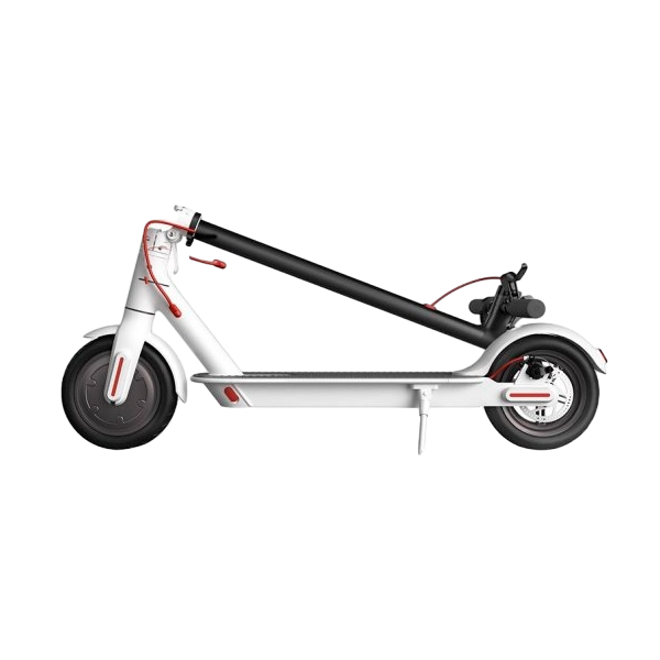 Simplemente, gira hacia abajo la palanca para plegar y verás cómo el timbre del monopatín es atrapado por el cerrojo en la rueda trasera. ¿El resultado? Un diseño compacto y seguro, perfecto para guardar Mi Electric Scooter en casa, en la oficina o en el maletero del coche.