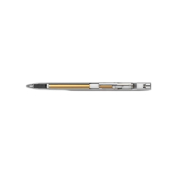 Con una rotacion suave, la punta del boligrafo se desliza.