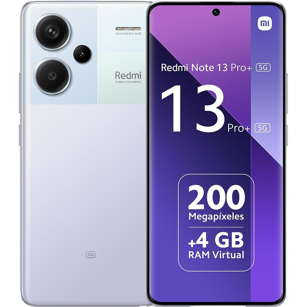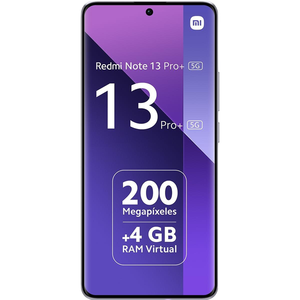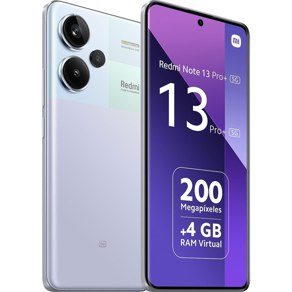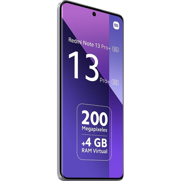 El Xiaomi Redmi Note 13 Pro+ 5G en color Aurora Purple es un smartphone de alta gama que combina diseño elegante y rendimiento excepcional. Su pantalla AMOLED de 6,67 pulgadas ofrece una resolución de 2712 x 1220 píxeles, proporcionando imágenes nítidas y colores vibrantes. Con una tasa de refresco de 120Hz y un brillo máximo de 1800 nits, garantiza una experiencia visual fluida y clara incluso bajo luz solar directa. La protección Corning Gorilla Glass Victus asegura durabilidad y resistencia a arañazos y caídas.
