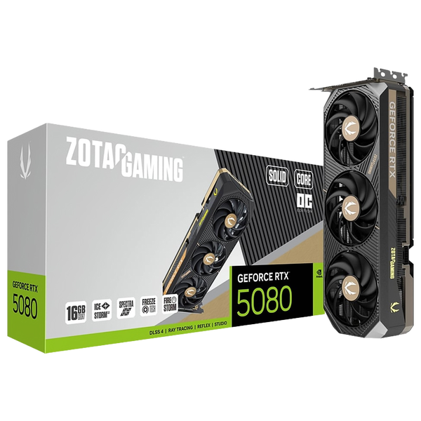 La Zotac GeForce RTX 5080 Solid Core OC 16GB GDDR7 es una tarjeta gráfica de alto rendimiento basada en la arquitectura NVIDIA Blackwell, diseñada para ofrecer una experiencia de juego y creación de contenido sin concesiones. Equipada con 16,384 núcleos CUDA y una frecuencia boost de hasta 2.8 GHz, proporciona un rendimiento extremo en juegos AAA y aplicaciones profesionales. Su diseño térmico avanzado incorpora una cámara de vapor y ventiladores de triple eje para una disipación de calor eficiente y silenciosa.